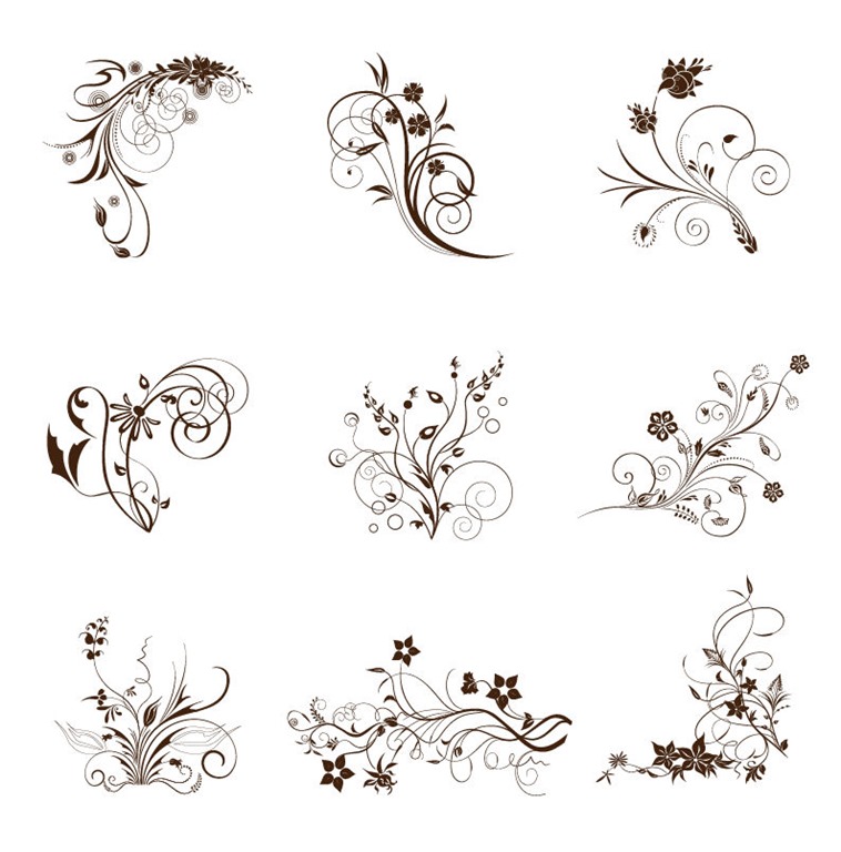 Name: Vector Illustration Set of Swirling Flourishes Decorative Floral Elements